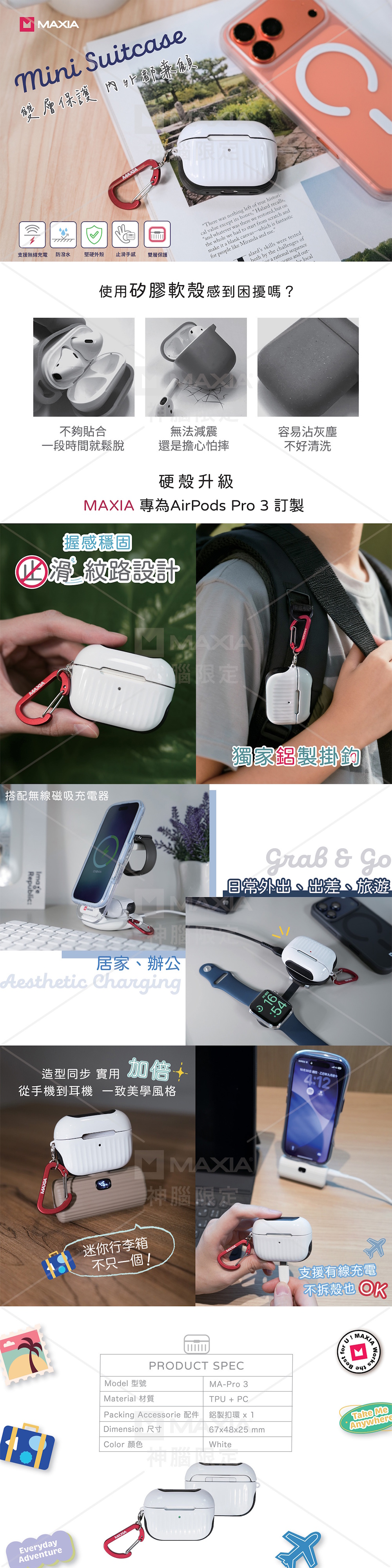 MAXIA AirPods Pro 3迷你行李箱保護殼 極簡白
