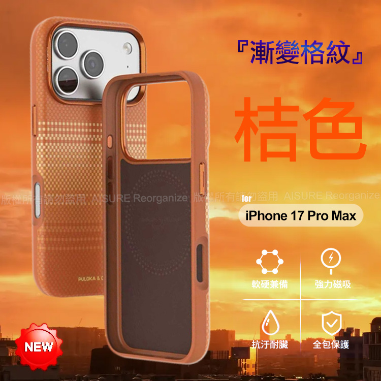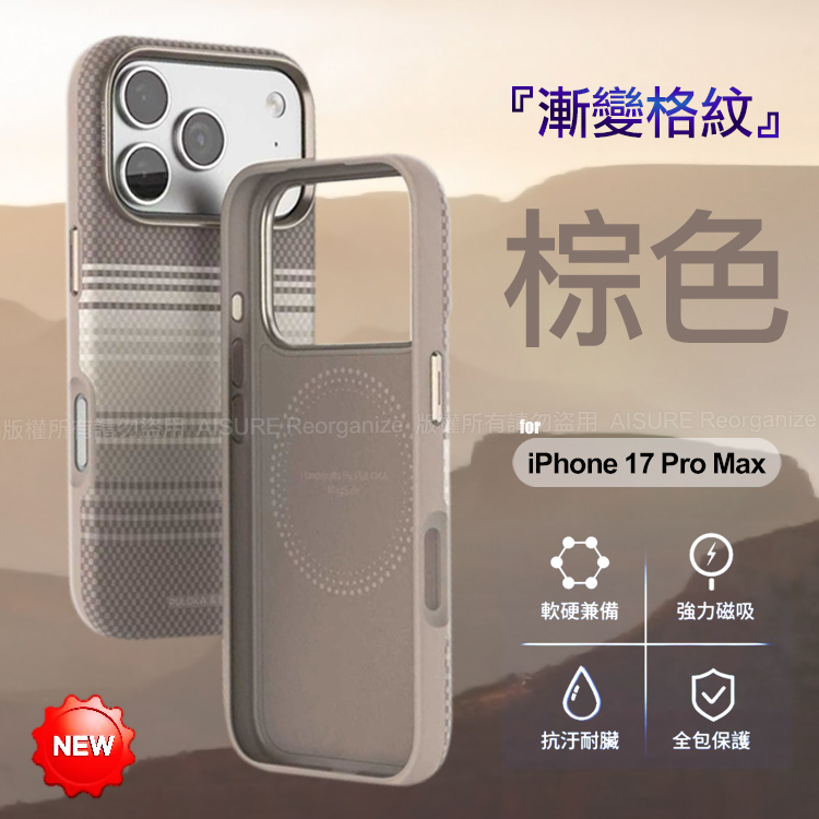 Puloka iPhone 17 Pro Max 6.9 凱夫拉藝術格紋磁吸鋁合金鏡頭框保護殼-棕