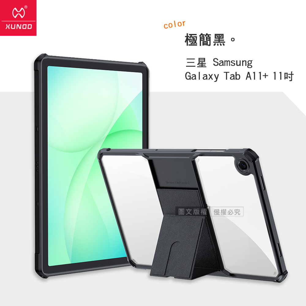 XUNDD訊迪 軍事氣囊 三星 Galaxy Tab A11+ 11吋 隱形支架殼 平板防摔保護套(極簡黑)