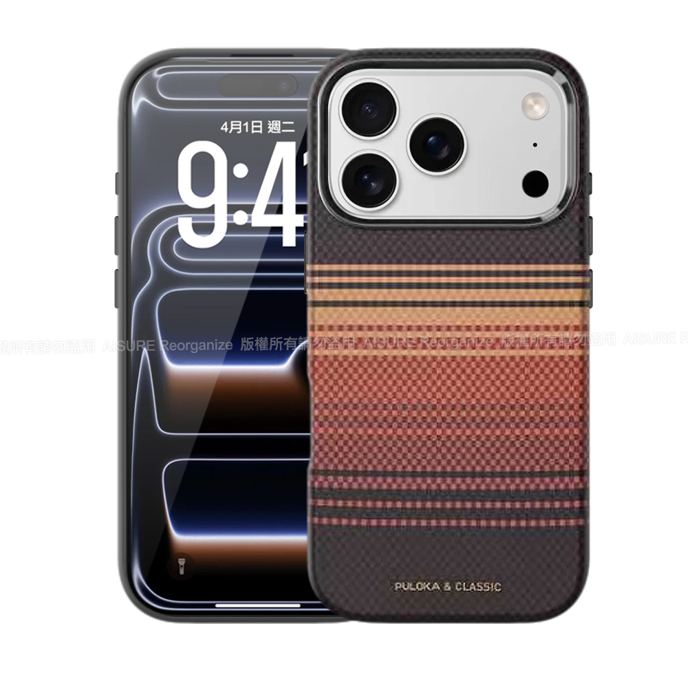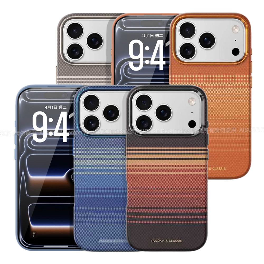 Puloka iPhone 17 Pro Max 6.9 凱夫拉藝術格紋磁吸鋁合金鏡頭框保護殼-黑