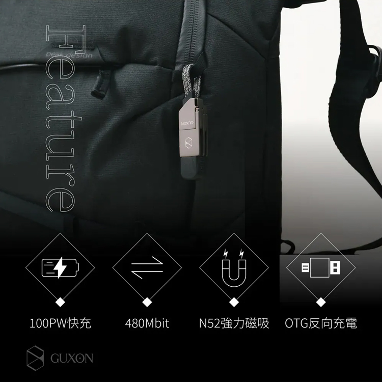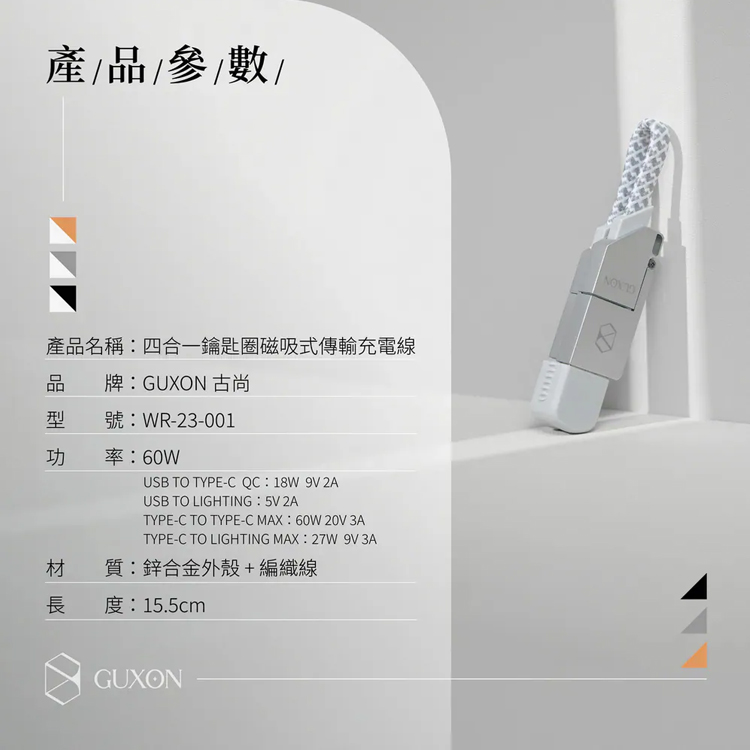 GUXON 四合一鑰匙圈磁吸式傳輸充電線-黑白