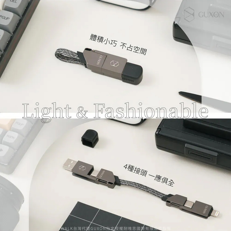 GUXON 四合一鑰匙圈快充充電線-黑白