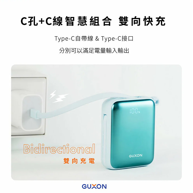 GUXON 巧方塊雙線行動電源 10000mAh-夜幕黑