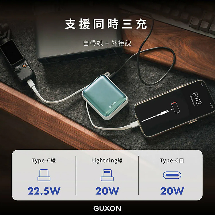 內建 USB-C 22.5W & Lightning 20W 雙線設計