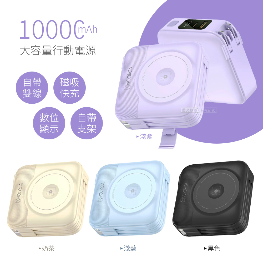 VOORCA 10000mAh 自帶雙線手機支架 磁吸無線充液晶顯示行動電源 BSMI/NCC/中國3C (奶茶)