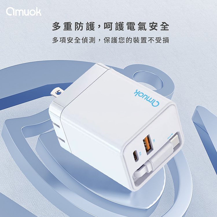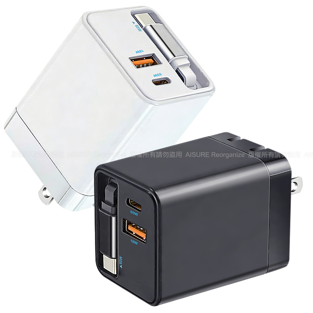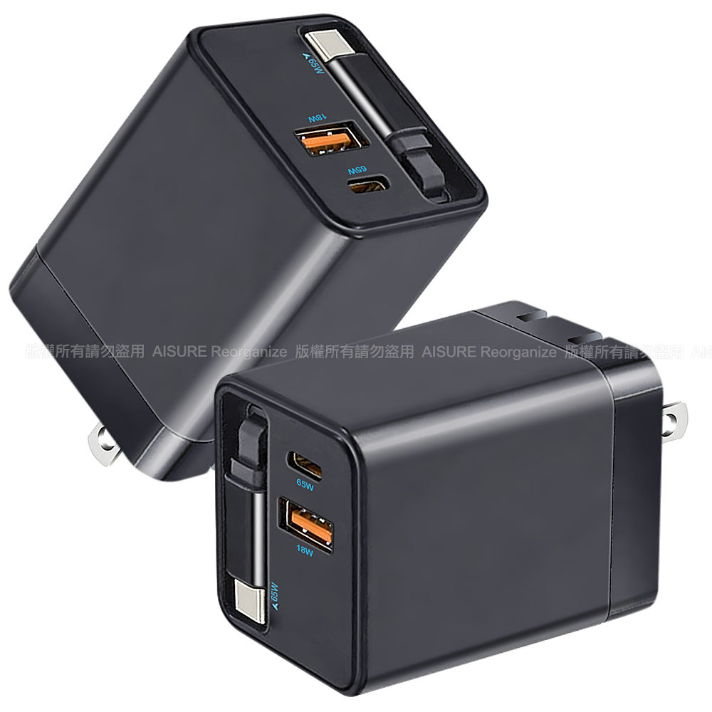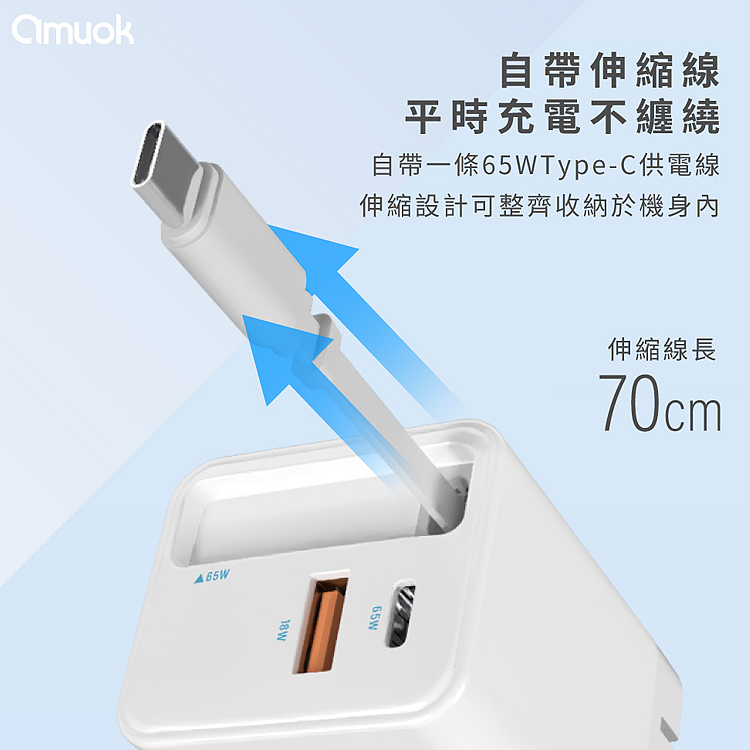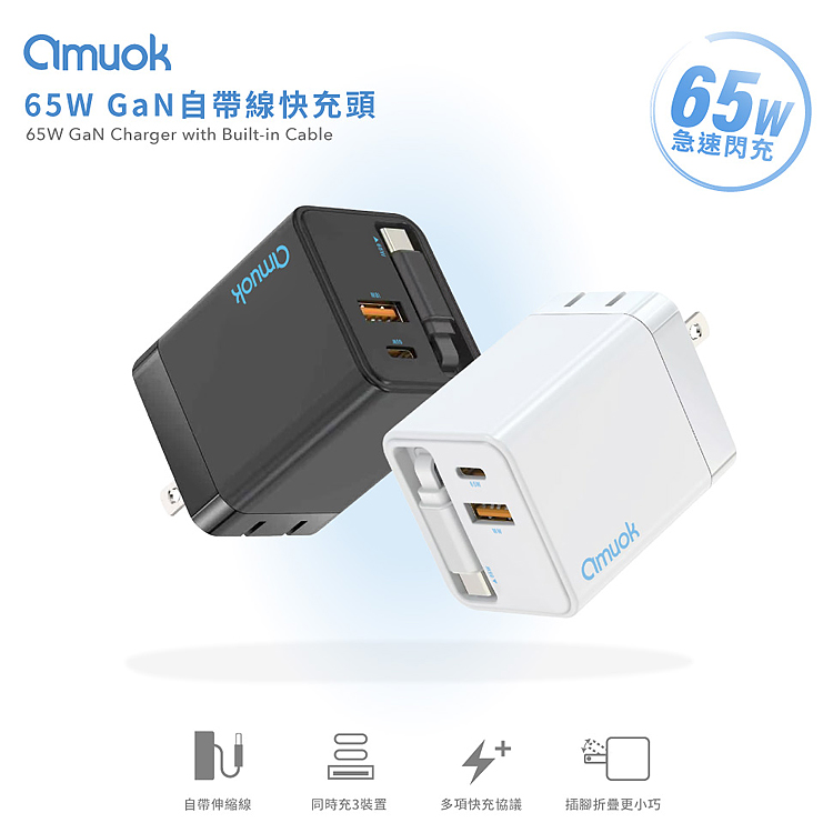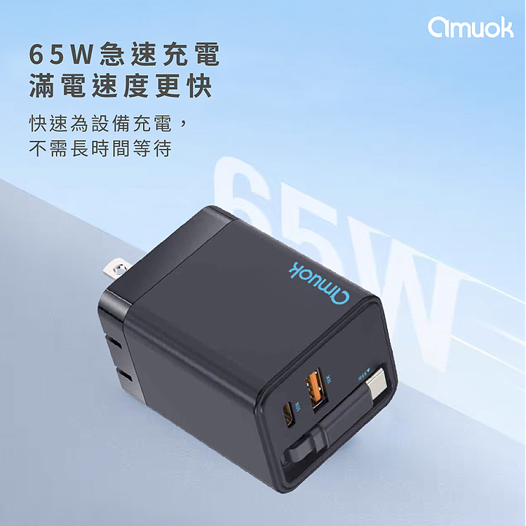 amuok 65W GaN伸縮線氮化鎵電源供應器-黑