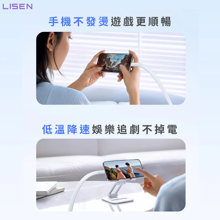 Lisen Cable系列27W超薄快充線 Type-C to iOS-藍