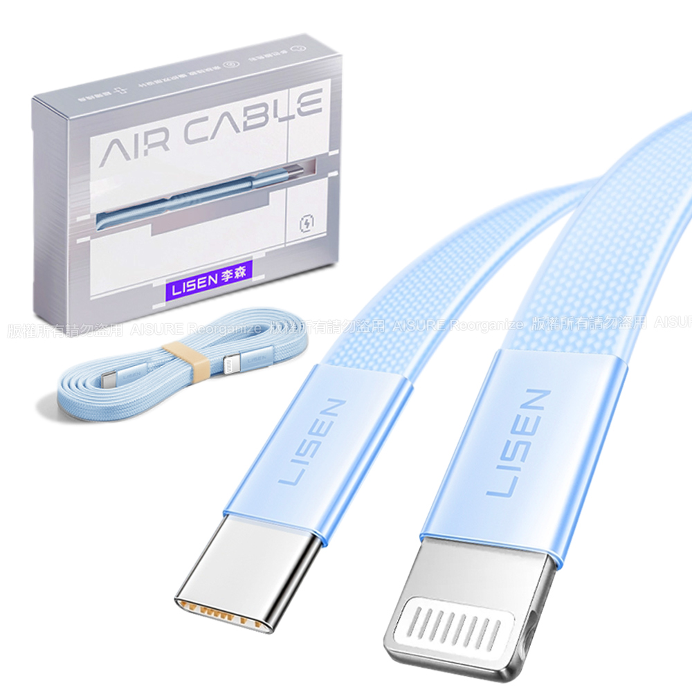 Lisen Cable系列27W超薄快充線 Type-C to Ios-藍