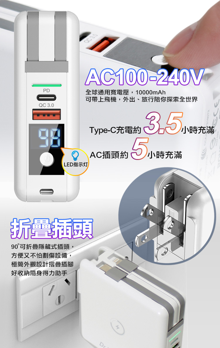 支援PD+QC3.0閃充輸出