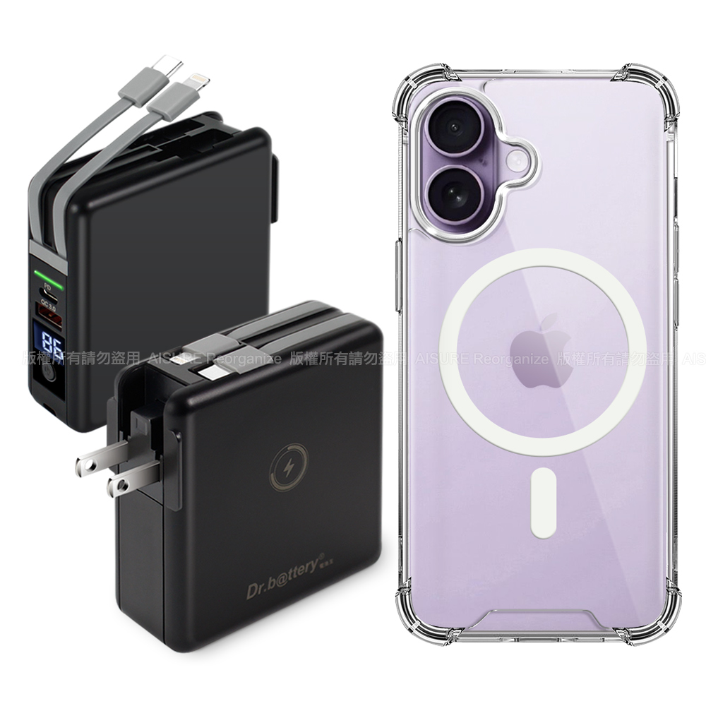 Dr.b@ttery電池王 多功能MagSafe無線充電+自帶線行動電源-黑+贈 iPhone17 磁吸殼