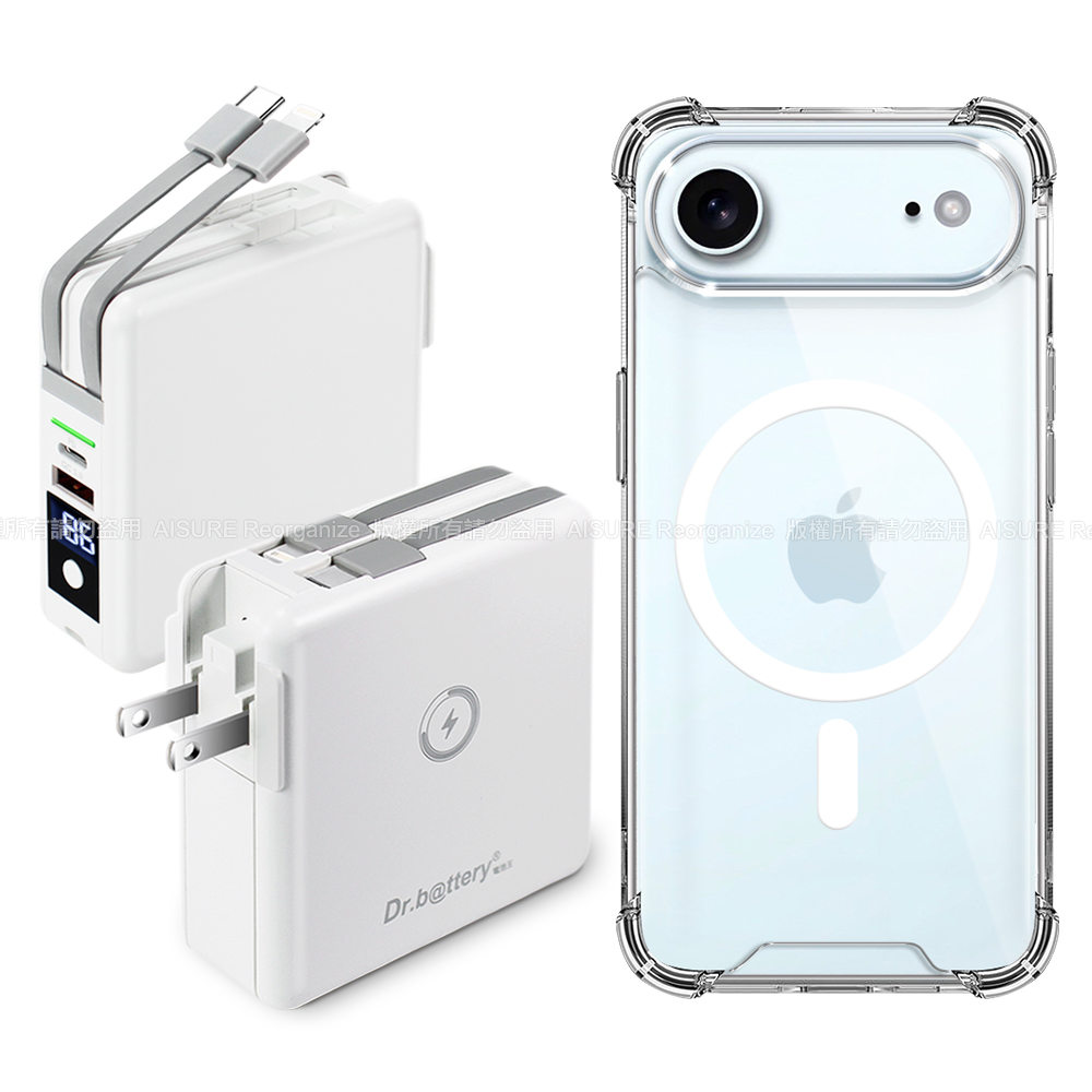 Dr.b@ttery電池王 多功能MagSafe無線充電+自帶線行動電源-白+贈 iPhone17 Air 磁吸殼