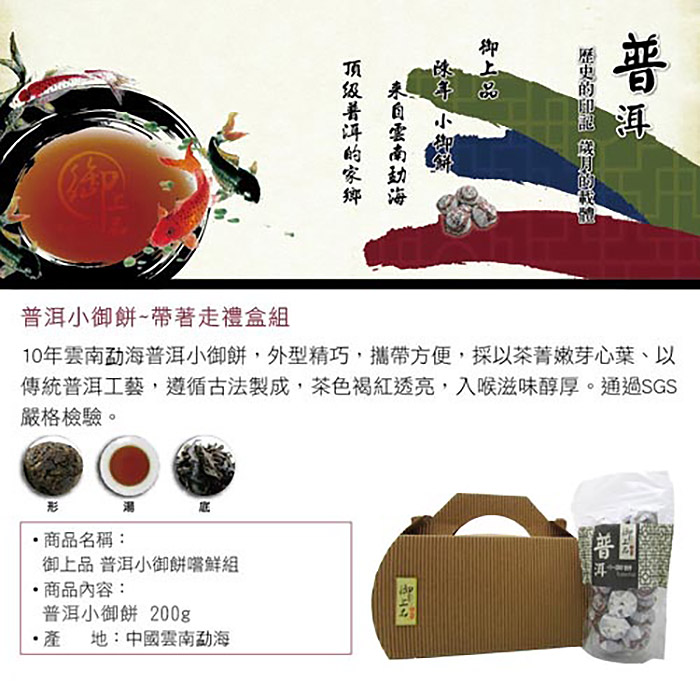 【御上品】普洱小御餅~帶著走禮盒組(小御餅200g、茶具組1組)