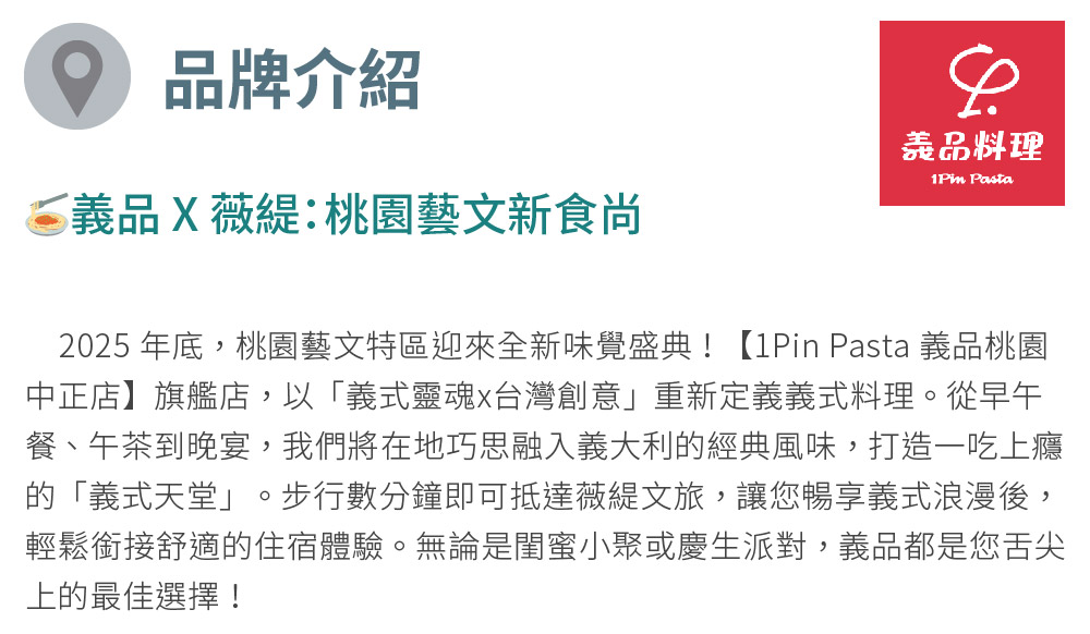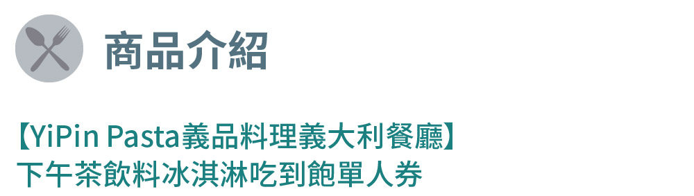 桃園中正【YiPin Pasta義品料理義大利餐廳】下午茶飲料冰淇淋吃到飽單人券(MO)