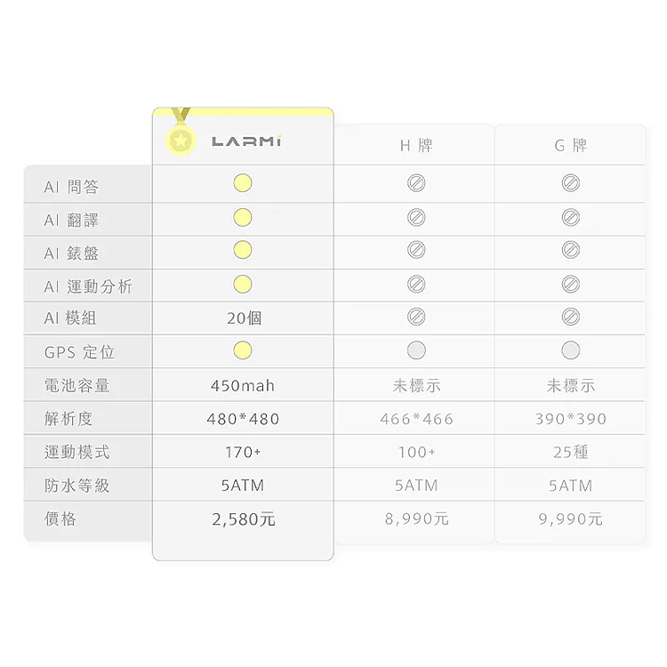樂米LARMI Ai6 智能手錶 智慧助理即時翻譯 5ATM防水智能手錶-鈦色-限量色
