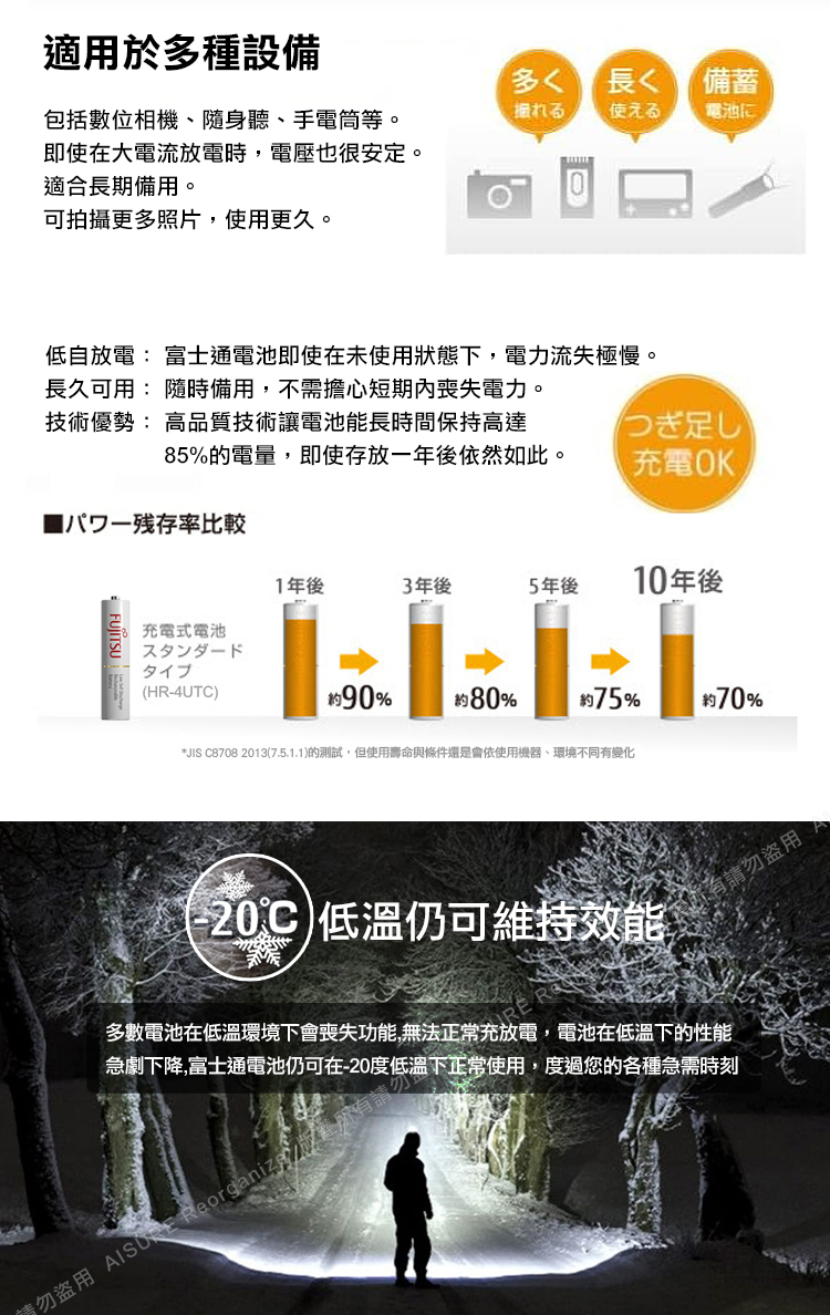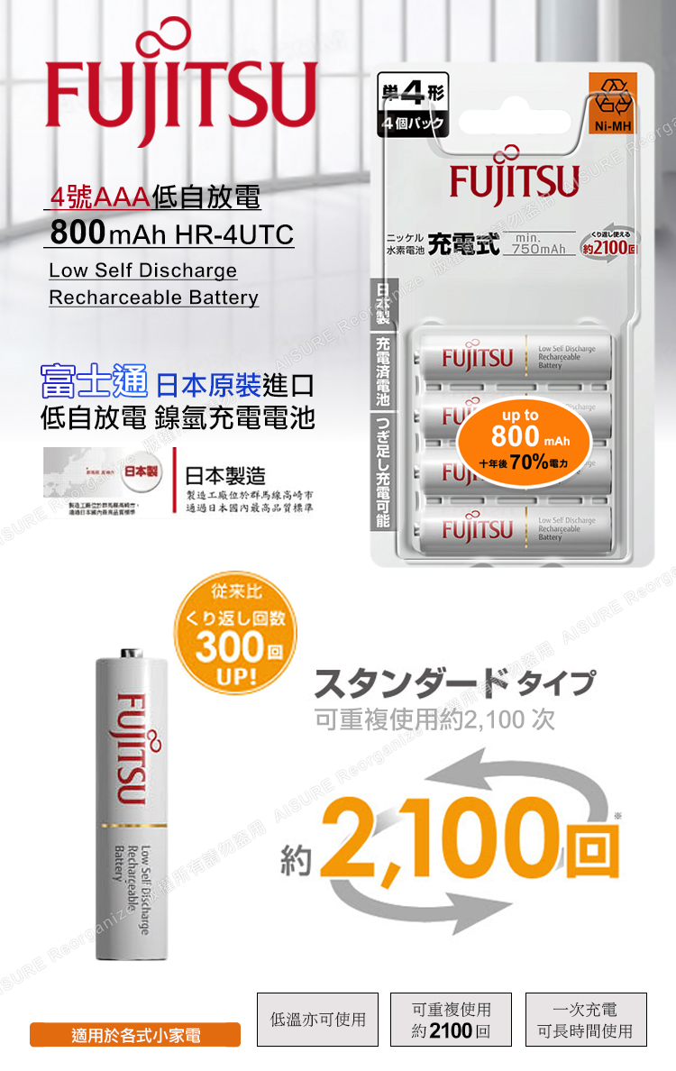 日本製 Fujitsu富士通 4號AAA低自放電750mAh充電電池HR-4UTC (4號12入)