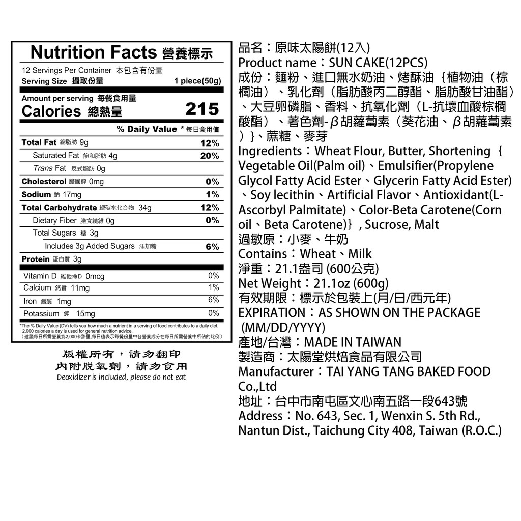 現貨【太陽堂】經典太陽餅禮盒宅配組(奶素 12入/盒 附提袋)_ 2026年節禮盒