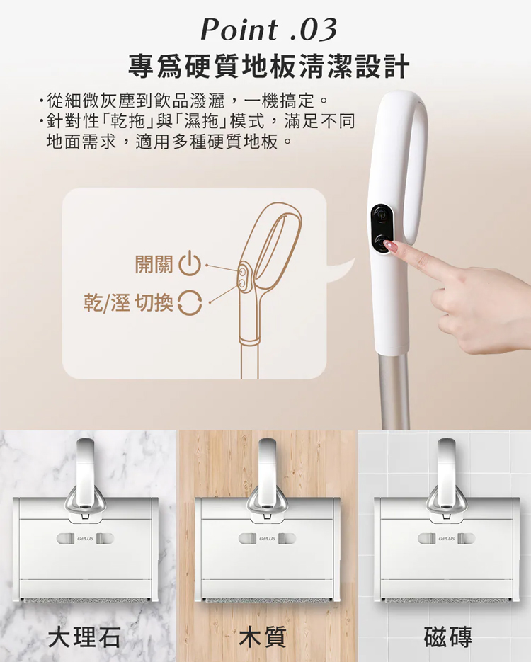 G-PLUS GP-V002W GP追夢 無線乾溼洗地機-白色