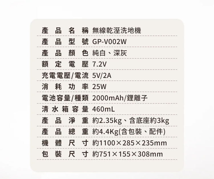G-PLUS GP-V002W GP追夢 無線乾溼洗地機-白