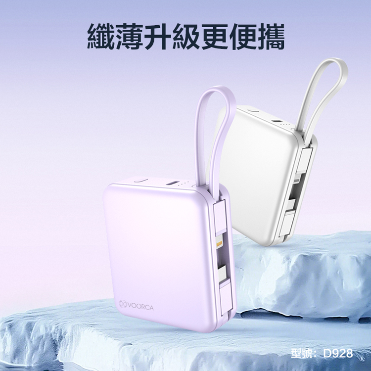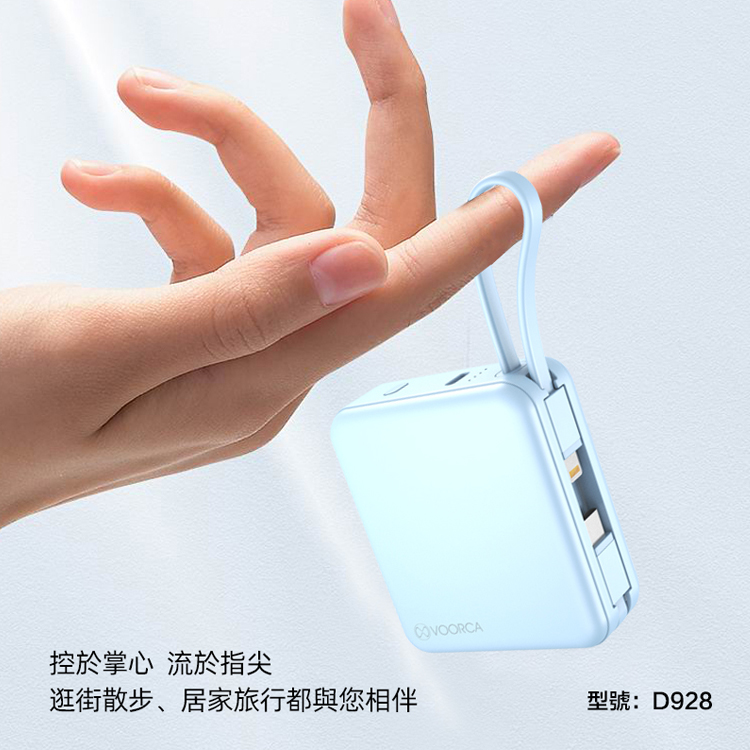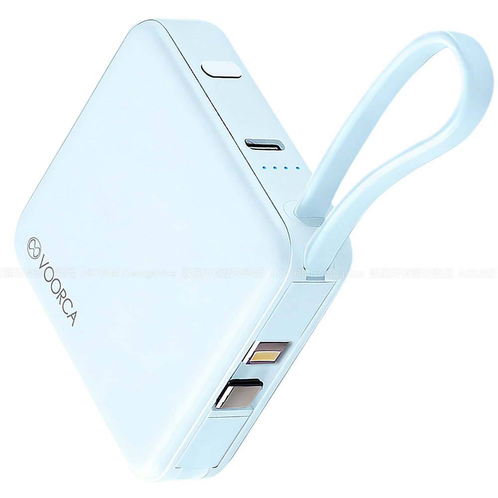 VOORCA 輕巧可愛 10000mAh 自帶雙線迷你行動電源-藍