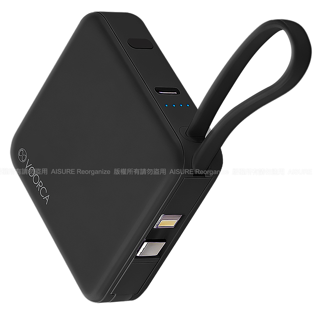 VOORCA 輕巧可愛 10000mAh 自帶雙線迷你行動電源-黑