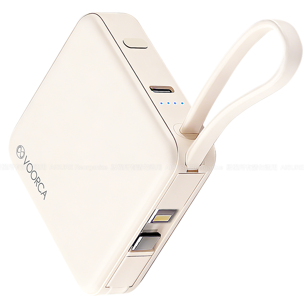 VOORCA 輕巧可愛 10000mAh 自帶雙線迷你行動電源-奶茶