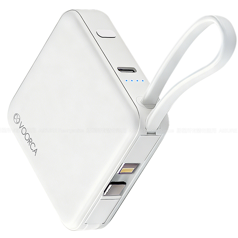 VOORCA 輕巧可愛 10000mAh 自帶雙線迷你行動電源-白