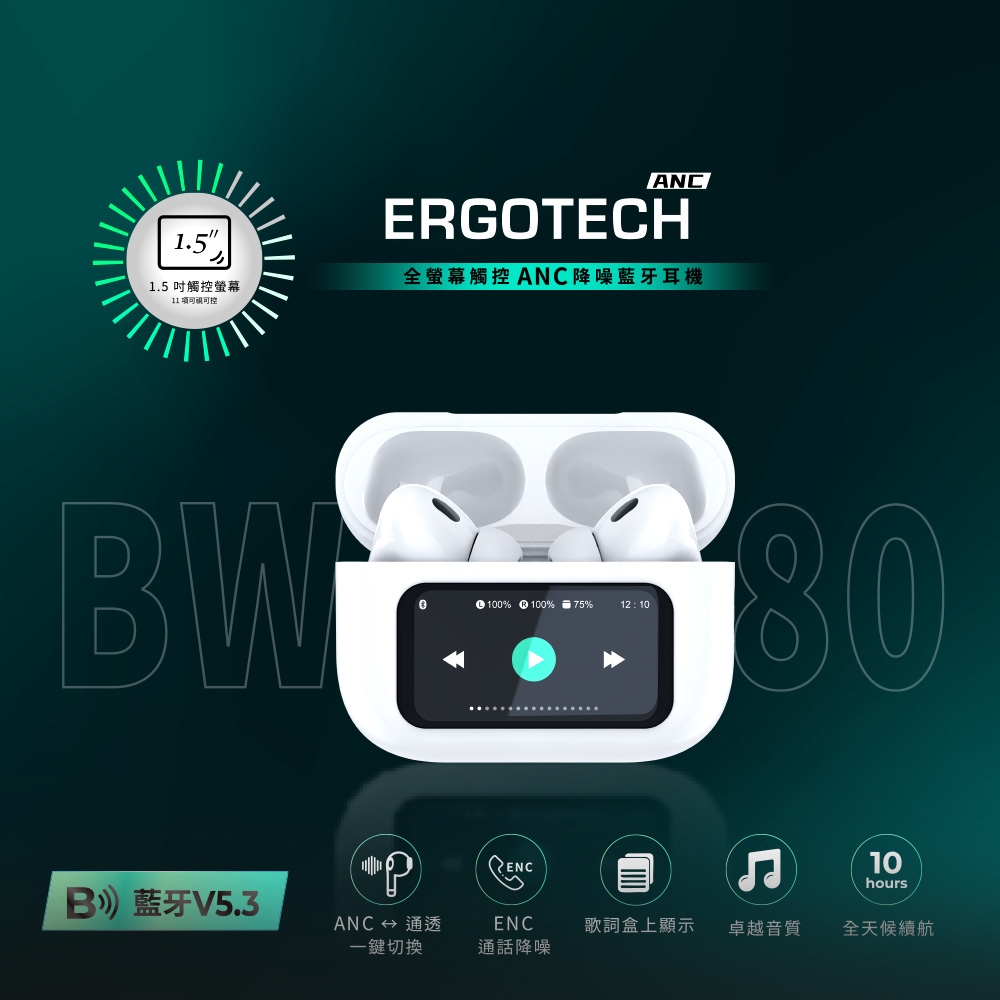 Ergotech 人因 BW80W彩色觸控螢幕ANC降噪藍牙耳機