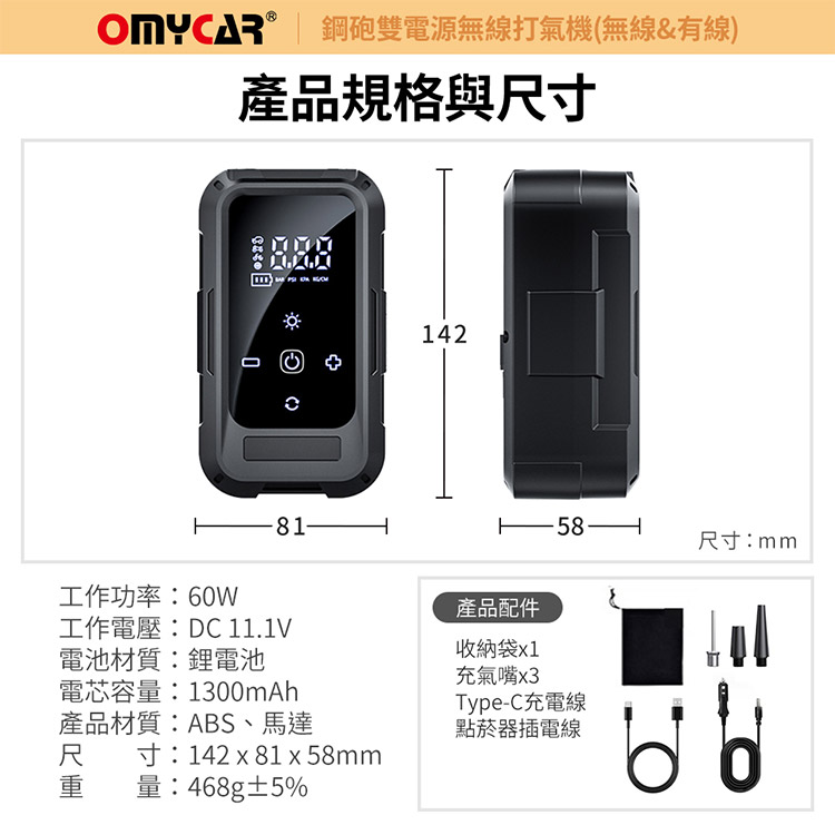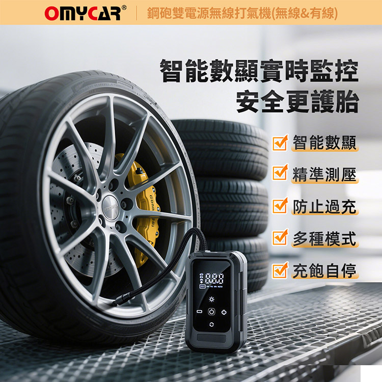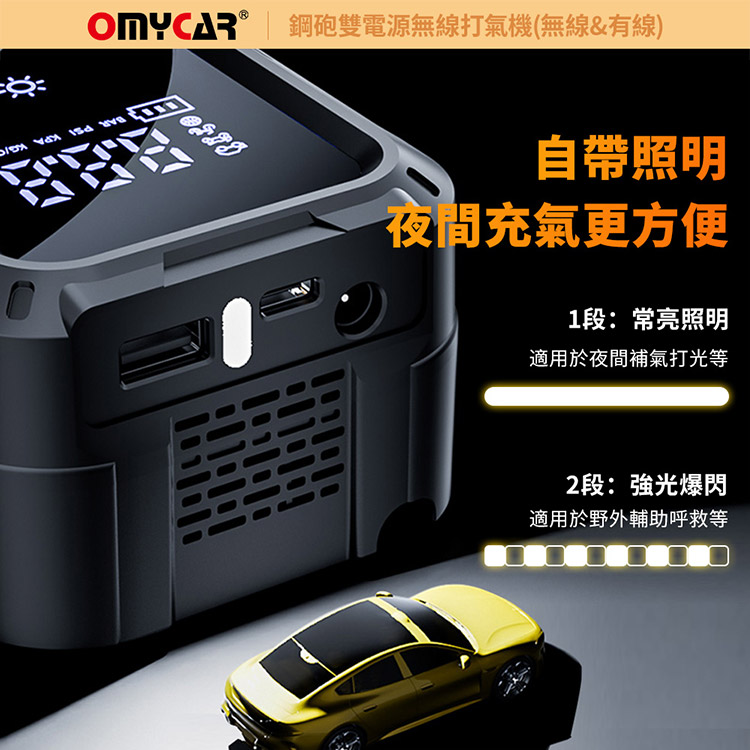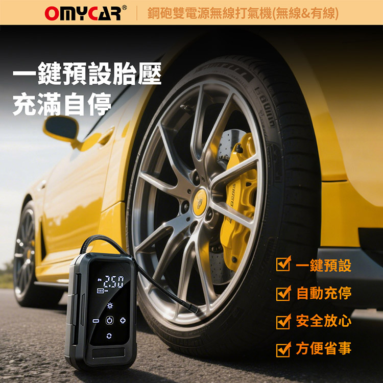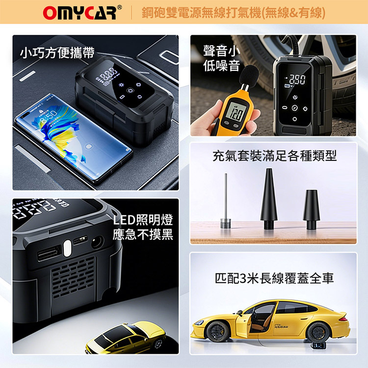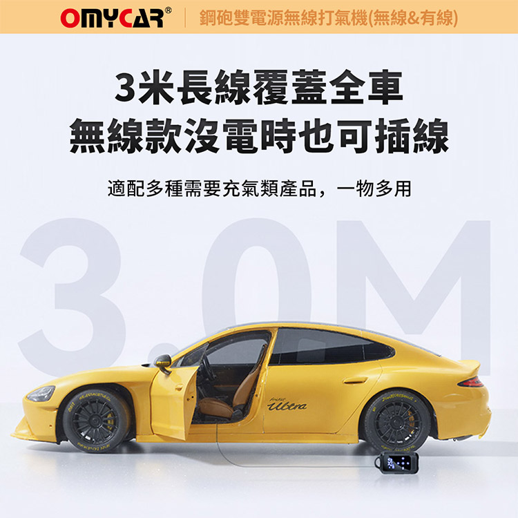 【OMyCar】鋼砲雙電源無線打氣機(無線&有線)一年保固 (汽車打氣機 輪胎打氣機 胎壓檢測)