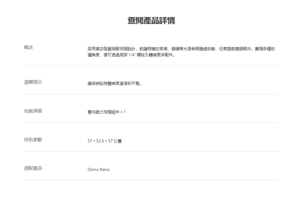 ★採用真空吸盤搭配球頭設計,能讓相機在玻璃、瓷磚等光滑表面隨處安裝