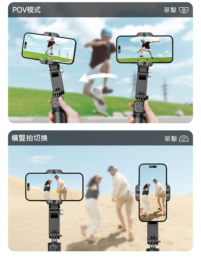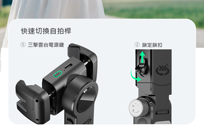 .快速切換自拍桿、雲台模式