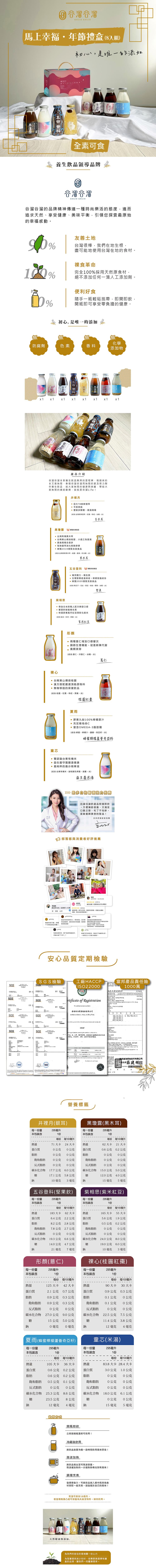 【谷溜谷溜】年節禮盒,嚴選多款人氣養生飲品組合,將滋補、潤養與元氣一次送到位。以天然食材製作,口感溫潤順口,無多餘添加,安心飲用無負擔。年節送禮或自用皆宜,寓意新年事事順心、馬到成功。