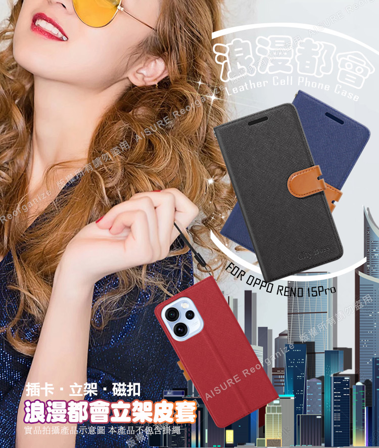 CITY OPPO RENO 15 Pro 浪漫都會支架皮套-藍