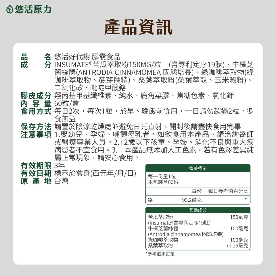 【悠活原力】好代謝 苦瓜胜肽+牛樟芝(60粒/盒)