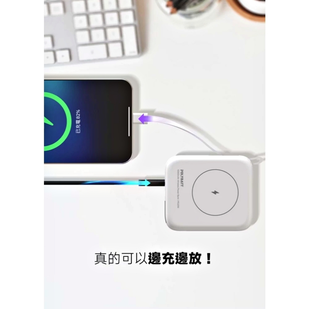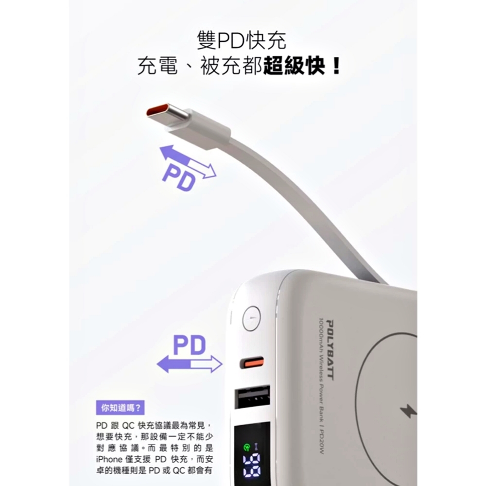 【POLYBATT】T10-20W多功能/時尚輕巧型-行動電源10000mAh(雙PD快充/磁吸/自帶線) 紫色