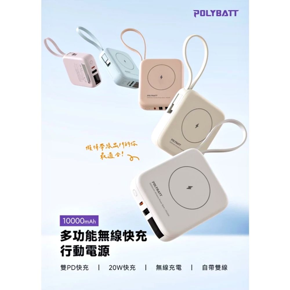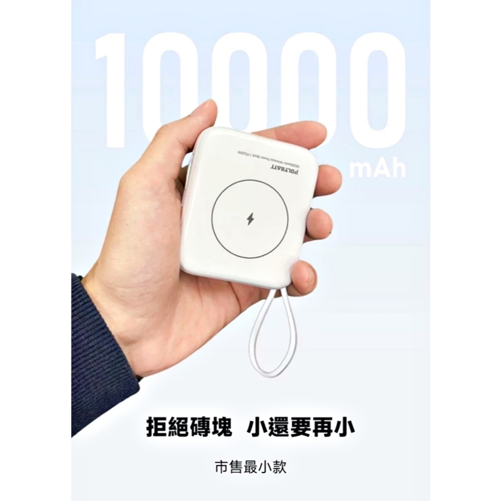 【POLYBATT】T10-20W多功能/時尚輕巧型-行動電源10000mAh(雙PD快充/磁吸/自帶線) 白色