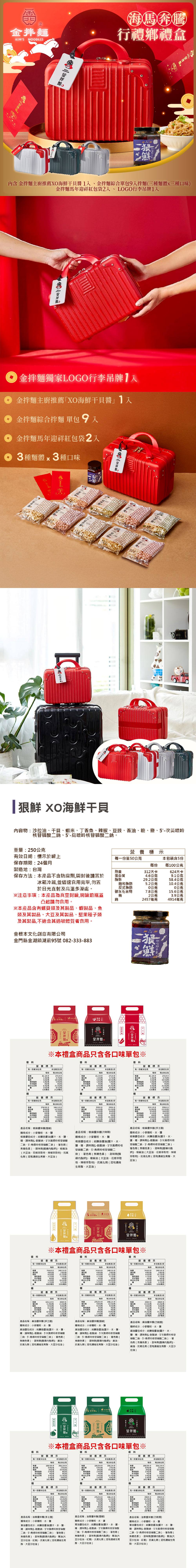 蔥油醬包成分:純釀造醬油(醬汁、水、鹽、糖、調味劑(L-麩酸納、5'次黃嘌呤核苷磷酸二鈉、5'-鳥嘌呤核苷磷酸二鈉)、著色劑(焦糖色素)、甜味劑(醋磺內酯鉀))、蔥油(大豆沙拉油、紅蔥)、抗氧化劑(混和濃縮生育醇、大豆沙拉油)