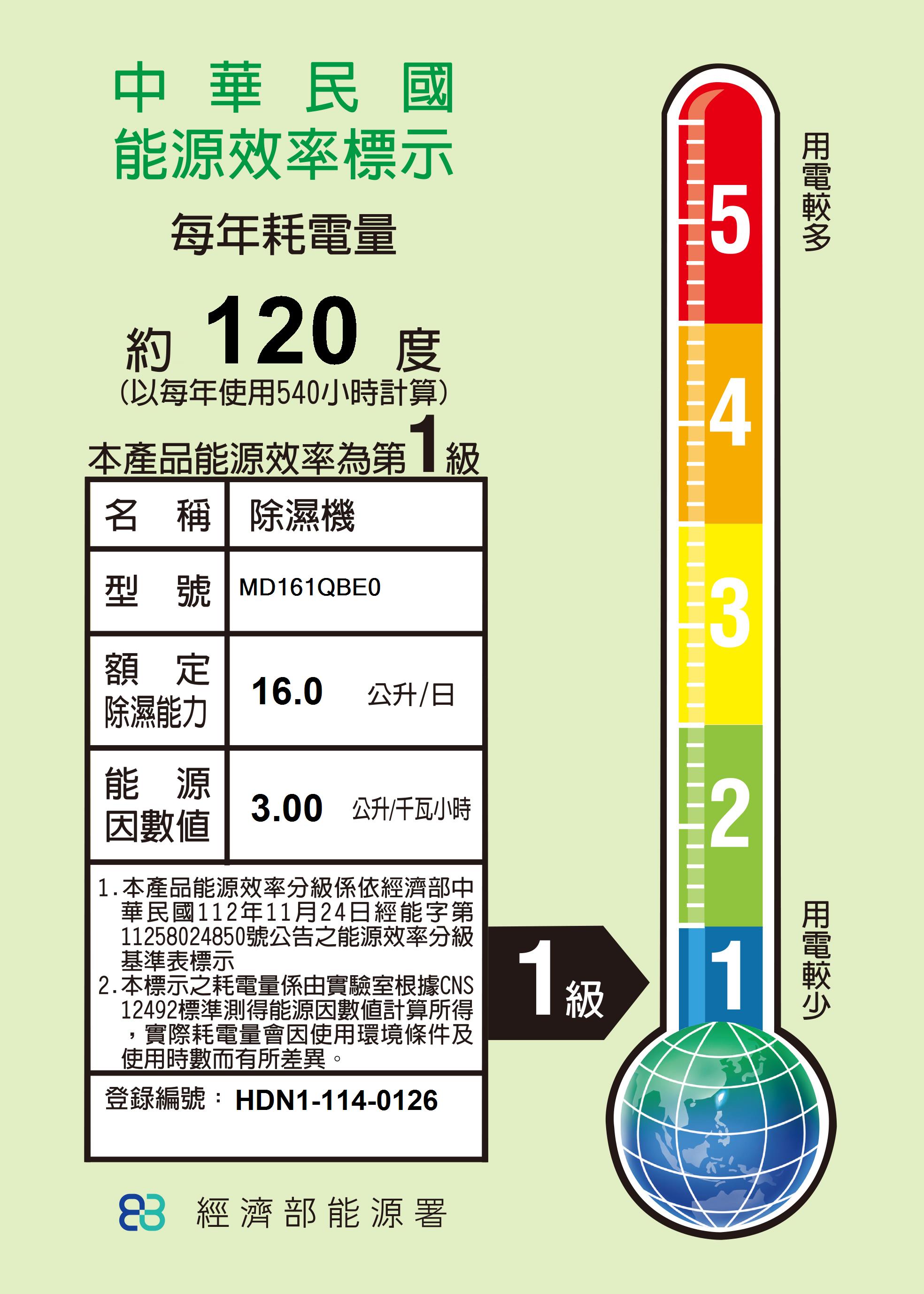 ★壓縮機、馬達雙變頻,符合除濕能效一級