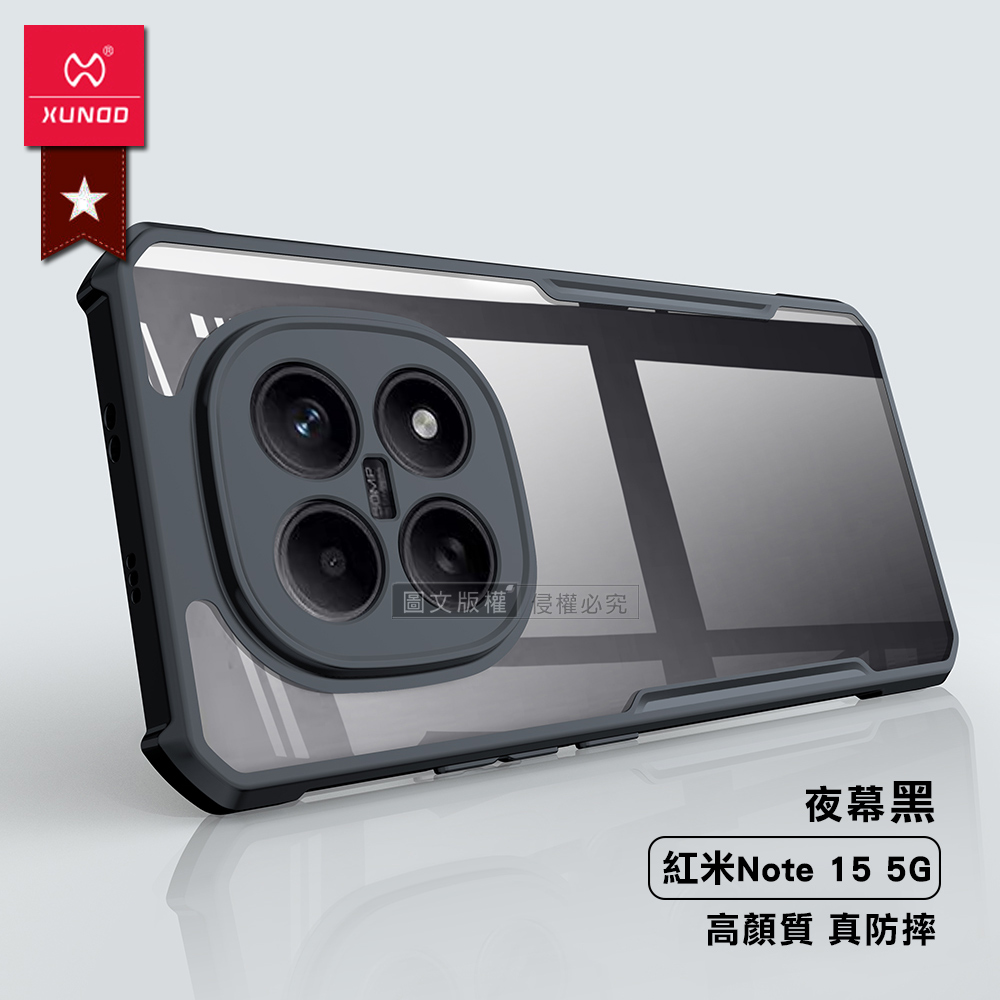 XUNDD訊迪 軍事防摔 紅米Redmi Note 15 5G/4G 共用 鏡頭全包覆 清透保護殼 手機殼(夜幕黑)