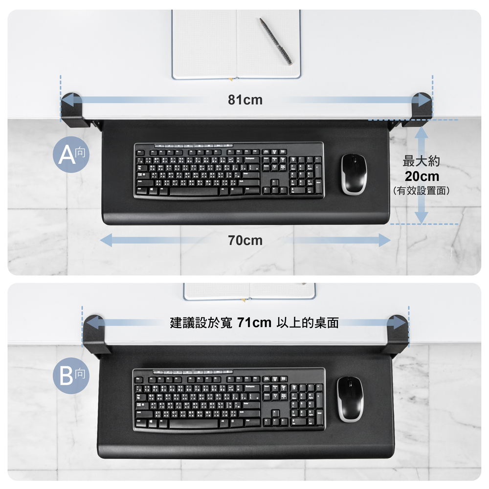 2. 估算桌面尺寸時,請務必將桌腳、桌下橫桿等狀態列入考慮