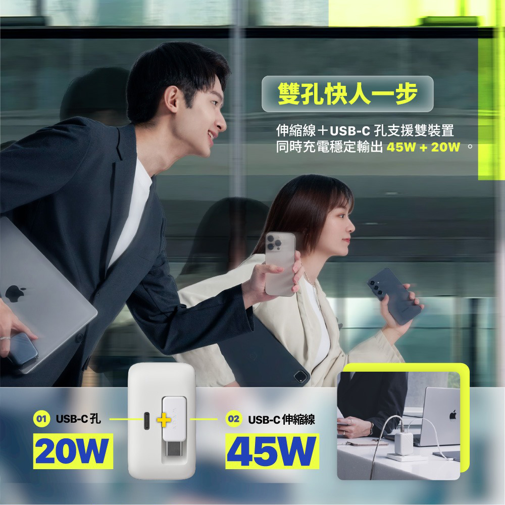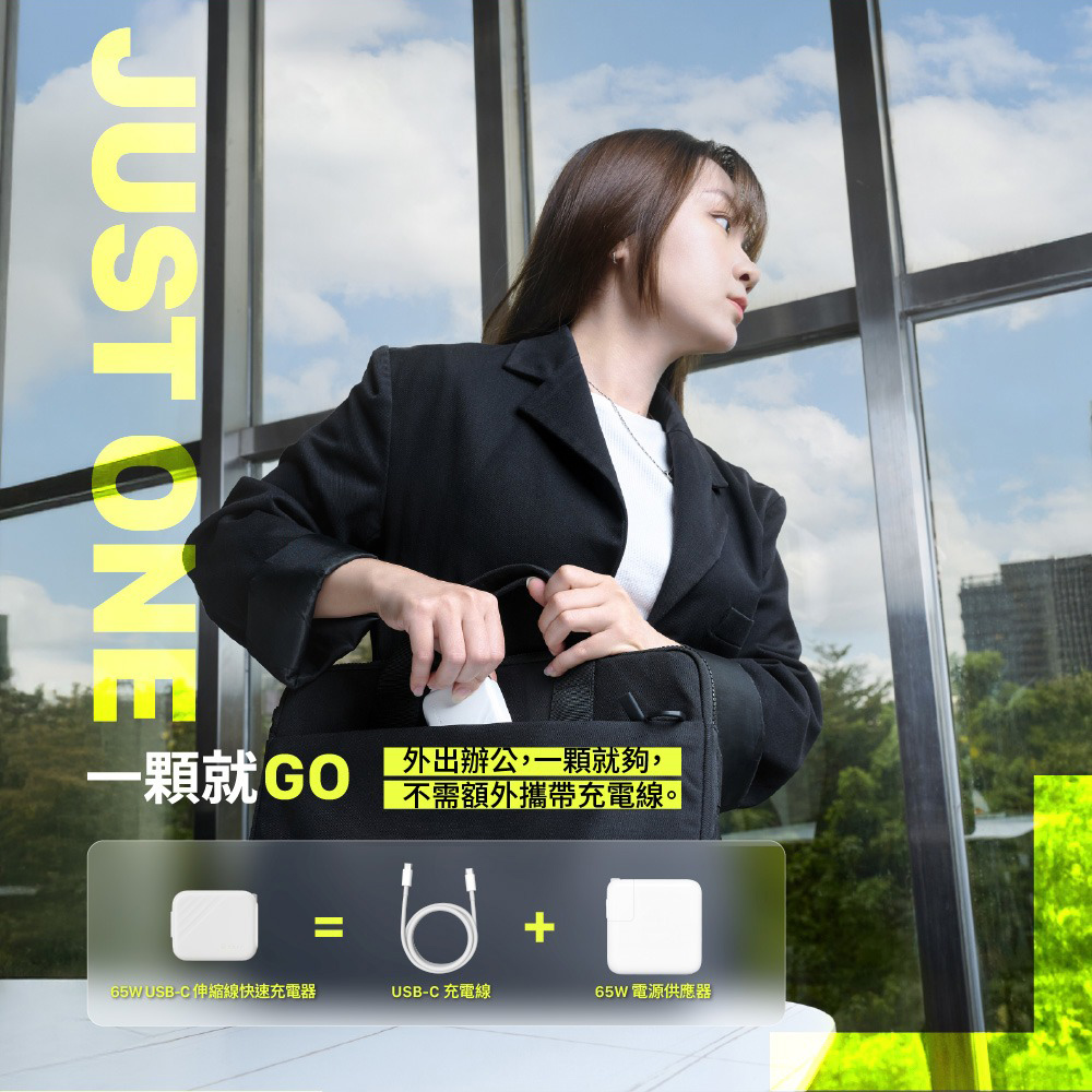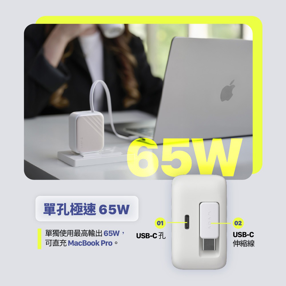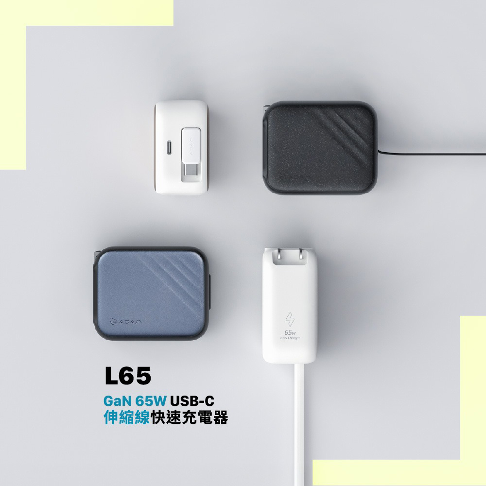 【亞果元素】L65 GaN 65W USB-C伸縮線快速充電器_白