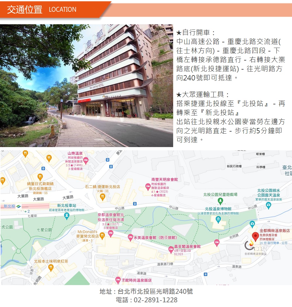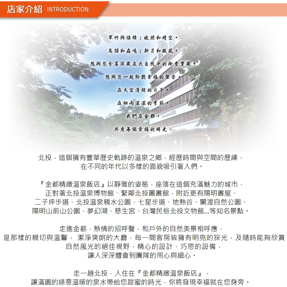 金都精緻溫泉飯店-親水景觀套房平日1.5H泡湯券