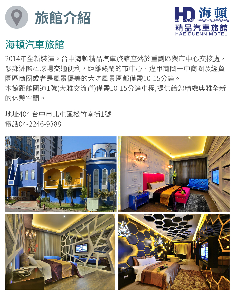 台中【海頓精品汽車旅館】雙人一泊一食住宿券(A經典樓中樓)(MO)