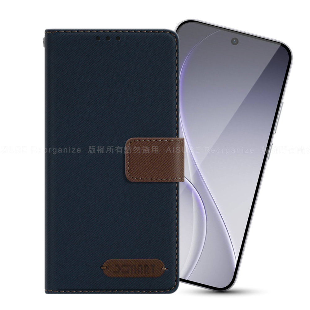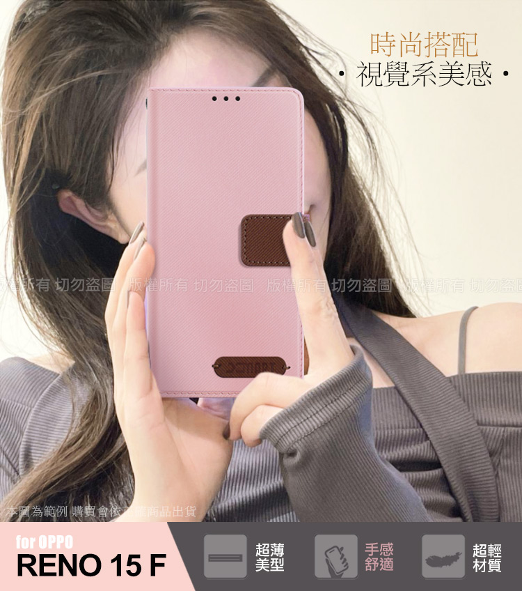 Xmart OPPO RENO 15F 度假浪漫風斜紋側掀支架皮套-藍