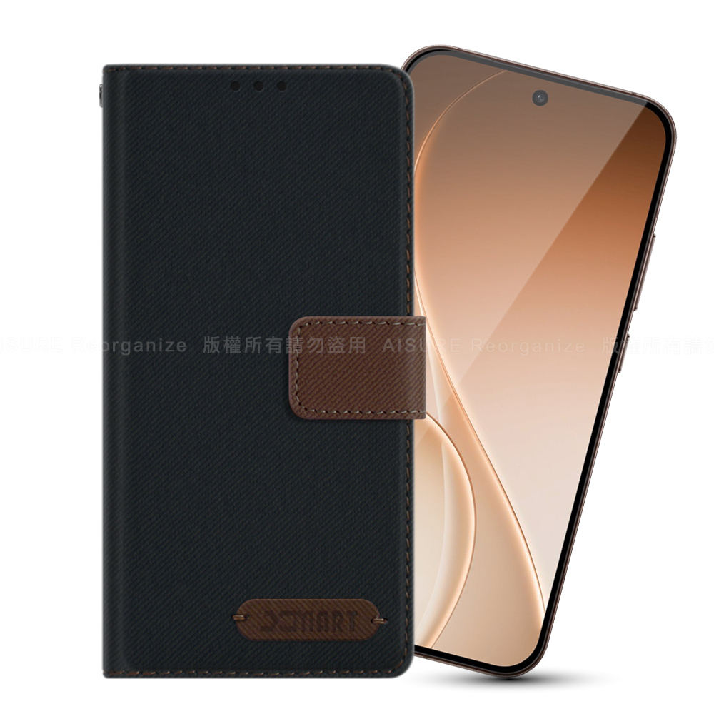 Xmart OPPO RENO 15 Pro 度假浪漫風斜紋側掀支架皮套-灰