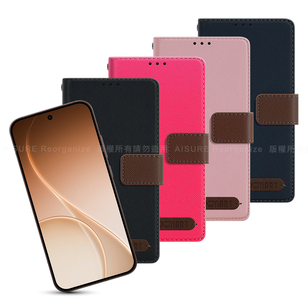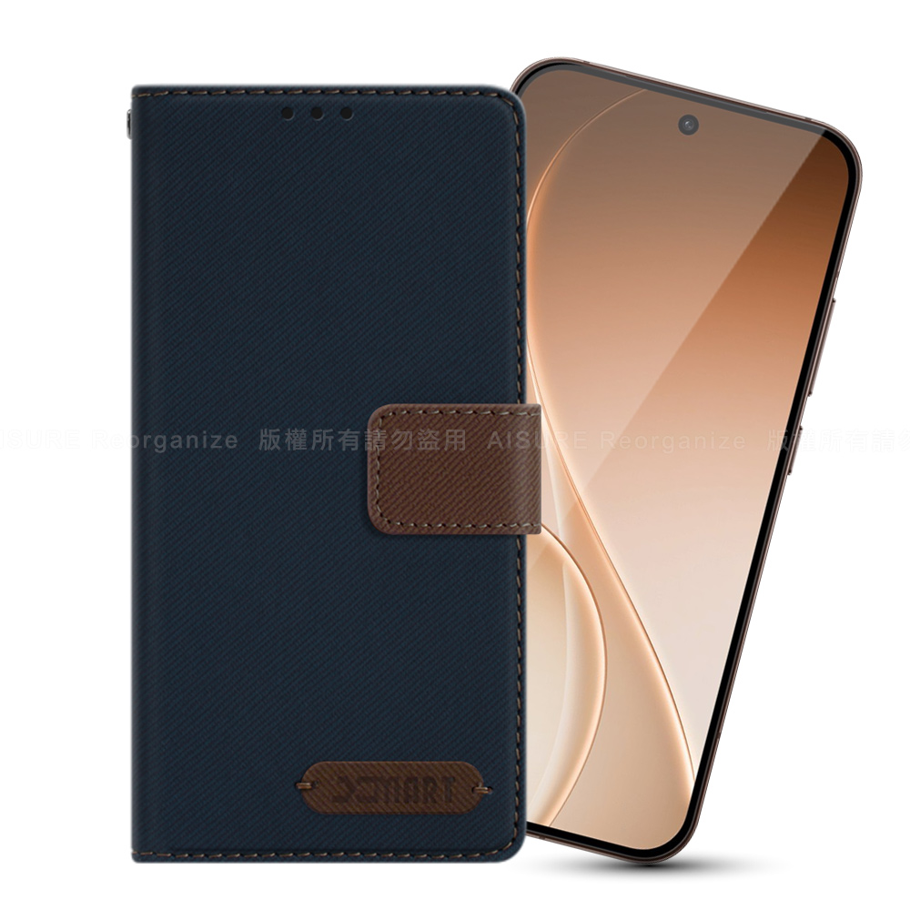Xmart OPPO RENO 15 Pro 度假浪漫風斜紋側掀支架皮套-藍