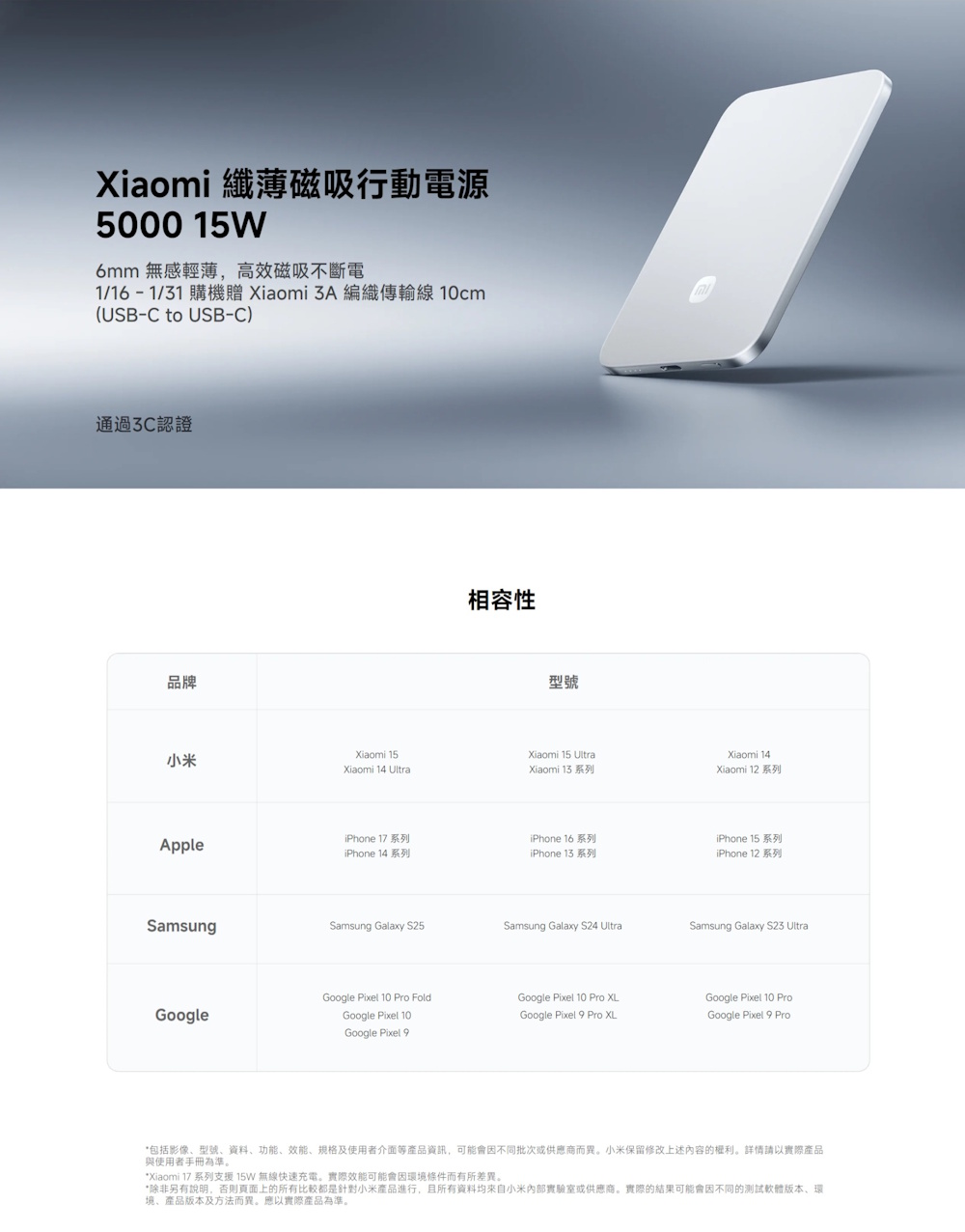 Xiaomi 纖薄磁吸行動電源 5000 15W