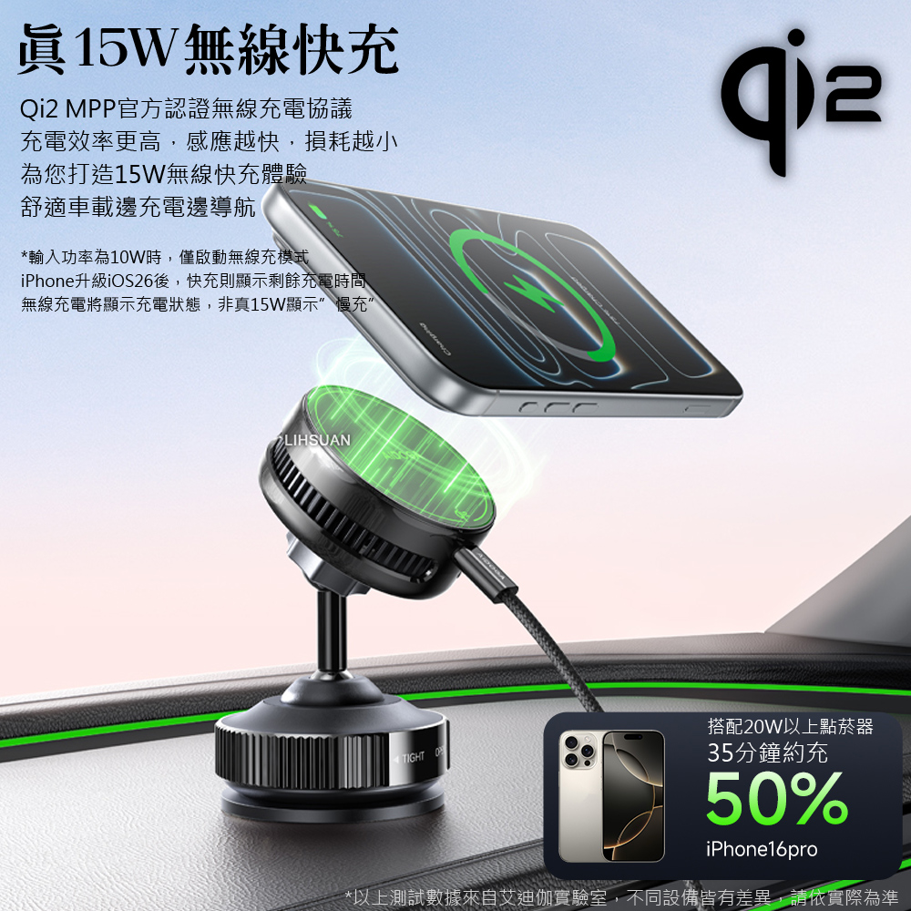 【2入】AIDOGA 艾迪伽 Qi2認證 製冷快充無線充電真空吸盤旋轉手機支架 15W LED 車用/桌面 MagSafe