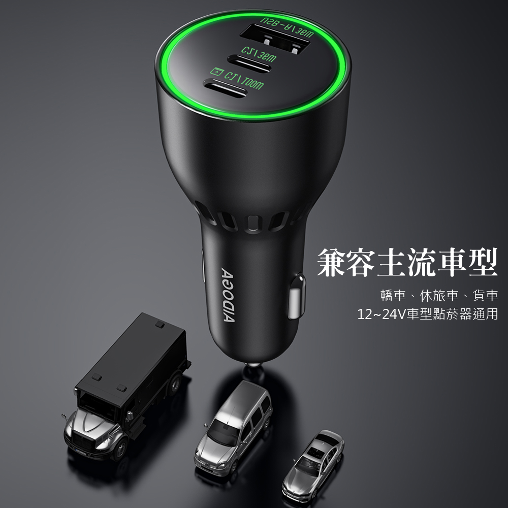 【車用快充組】AIDOGA 艾迪伽 136W 3孔 PD車充充電器點菸器+Type-C充電傳輸線 毛孩 LED