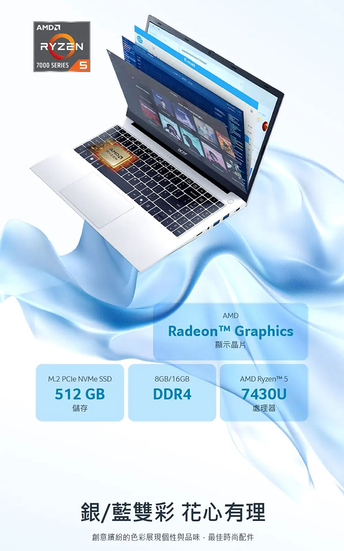 《Acer 宏碁》 AL15-42P-R8QP (15.6吋FHD/Ryzen 5 7430U/8G+8G/512G SSD/Win11/兩年保/特仕版)