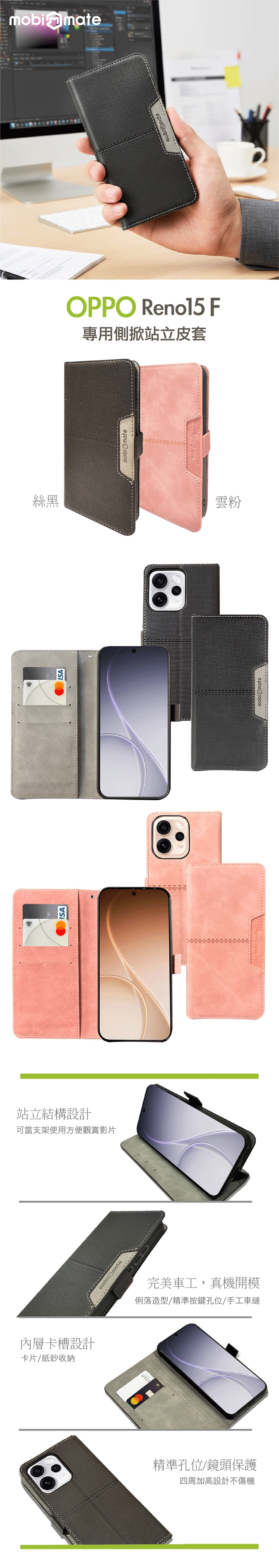 Mobi Mate OPPO Reno15 F 專用側掀站立皮套